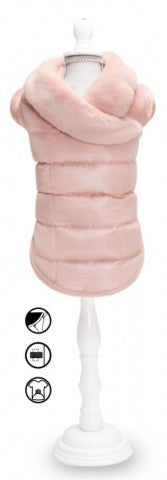 Jas van Croci in roze afgewerkt met een faux fur kraagje.
