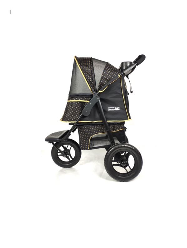 De InnoPet Buggy Adventure bevat al onze exclusieve features. het gazen voorraam klapt omhoog onder de kap van de kap (in plaats van in het compartiment voor huisdieren), waardoor uw hond of kat meer ruimte krijgt. De Smart-ritssluitingen zijn voorzien van een pre-ritssluiting met twee ritsen die het mogelijk maken om aan beide kanten te ritsen ..dit is uniek, hetzelfde als met een koffer. Nooit meer een rits rijgen zoals je doet met een jasje elke keer dat je het gebruikt. De duwstang, vergeleken met wandelwagens van vergelijkbare grootte, biedt meer bewegingsruimte , zodat u gemakkelijk in elk tempo kunt lopen zonder tegen de as aan te trappen. In het mandje onder de carrier kunt u allerlei zaken opbergen. Dit mandje is voorzien van een rits voor meer veiligheid ! tevens biedt deze buggy een achter ingang. Met het eenvoudige inklapmechanisme kunt u de wandelwagen eenvoudig vanaf een knop op het handvat inklappen. De 12 inch wielen zijn gemaakt van duurzaam EFA-schuim ( nooit meer een lekke band ) en het voorwiel heeft kogellagers voor een soepele en comfortabele wandeling. Al met al is dit een buggy waar u lang plezier van zult beleven.
